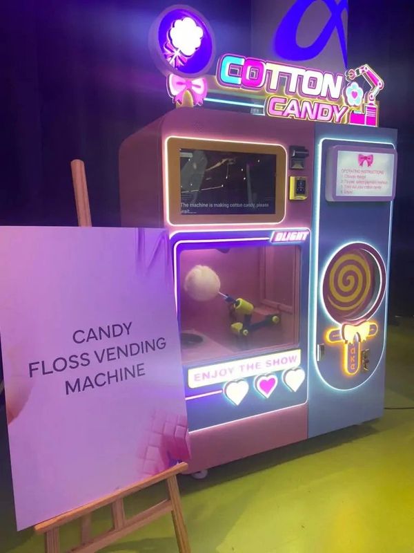 Freshly spun, fluffy, and ready in seconds! 🍭 Simply tap, choose your flavor, and watch as our vending machine creates delicious cotton candy on the spot—no wait, no hassle, just pure sweetness!